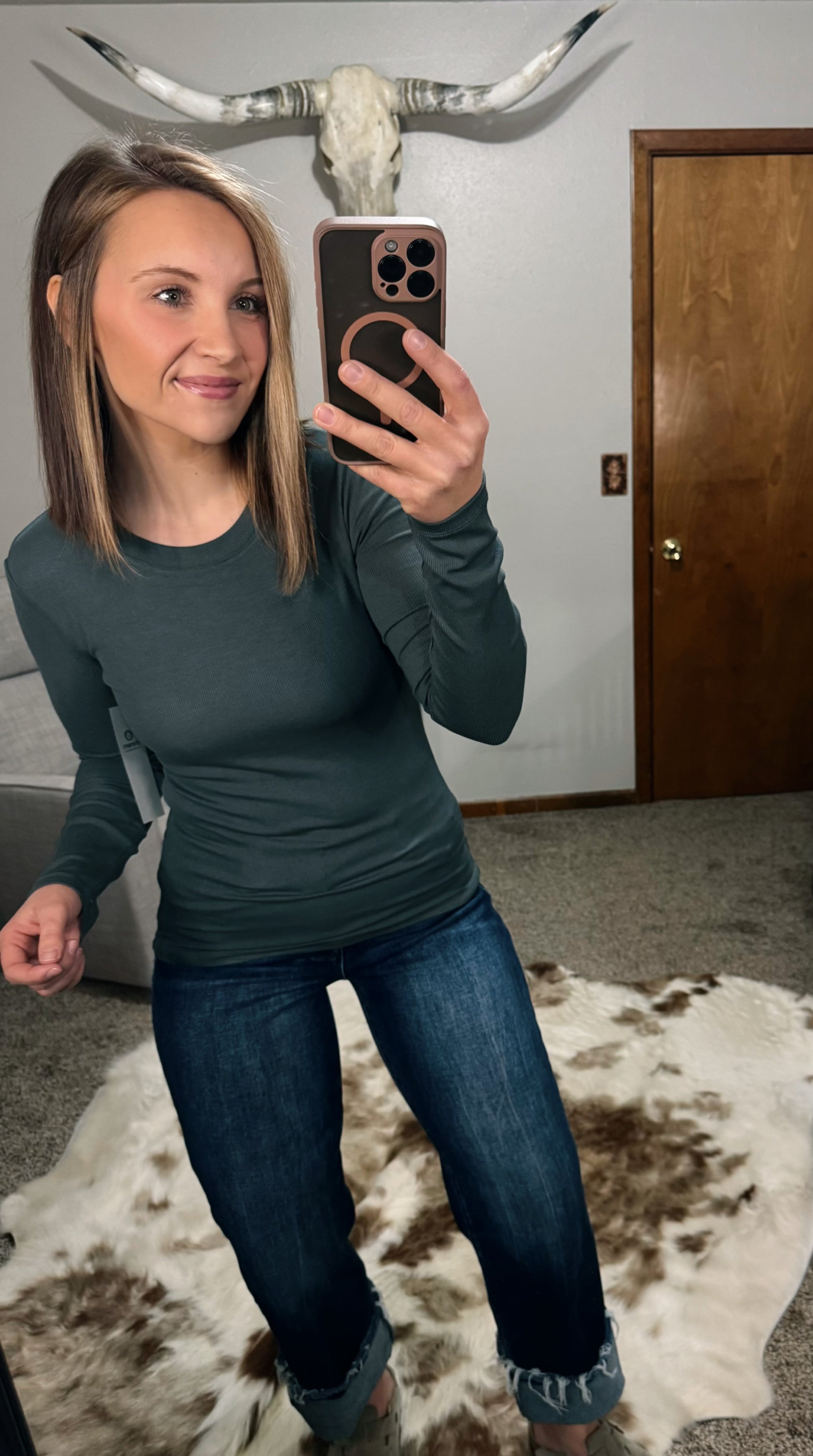 - Essential long sleeve micro ribbed athleisure top